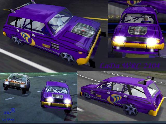 | Мод добавляет в NFS: UG2 раллийную версию ВАЗ‑2104 («четвёрка» в стиле World Rally Championship), заменяя штатный автомобиль Nissan Skyline. Это конверсия очень старой модели из NFS High Stakes 2002 года, адаптированная для Underground 2 с сохранением фирменного духа гонок. Из тюнинга в данном автомобиле доступны только колесные диски. Установка: 1) Скопируйте папку SKYLINE в NFS Underground 2\CARS; 2) С помощью CfgInstaller, импортируйте u2car-скрипт. Автор оригинальной модели ВАЗ-2104: Lelik Автор раллийного тюнинга: Givix Конвертация из High Stakes в Underground 2: piman